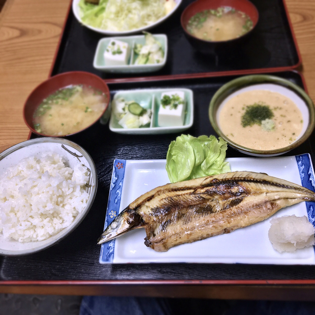 活アジフライ、鳥手羽元と大根煮定食。¥850。