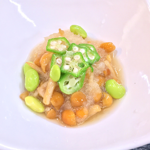 ブリ納豆の生のりトロロかけ&コロッケ定食。¥850。