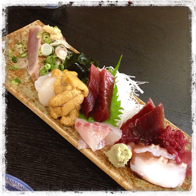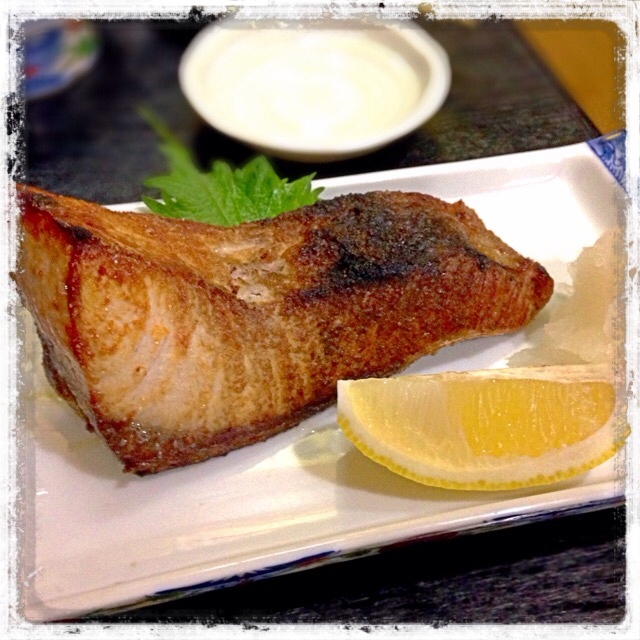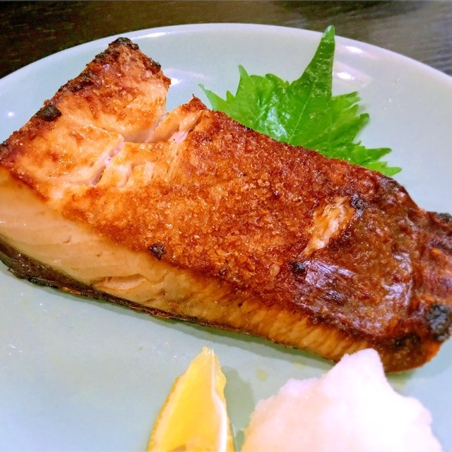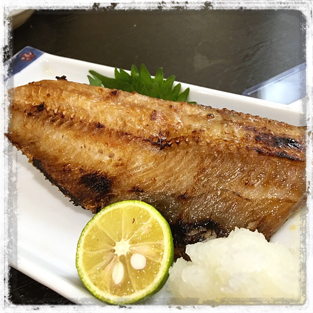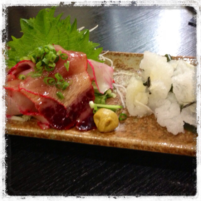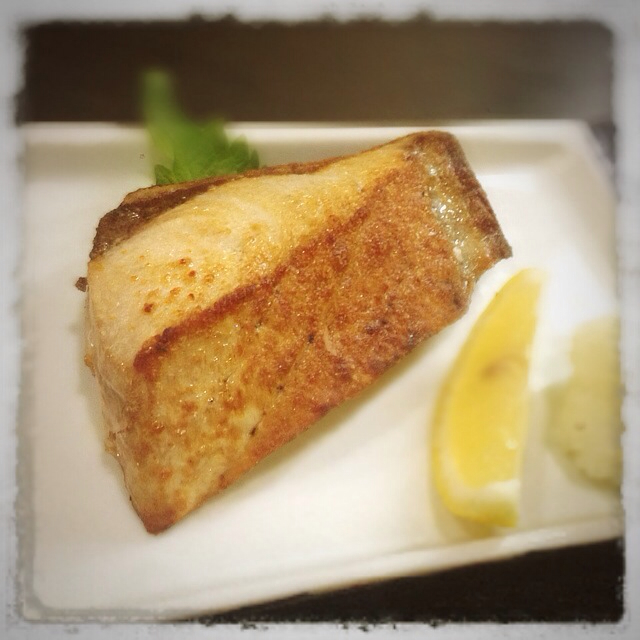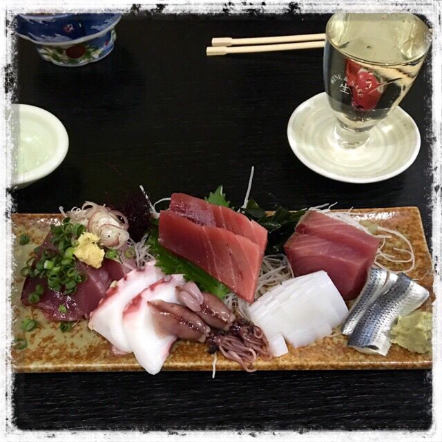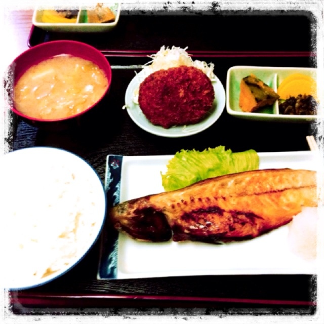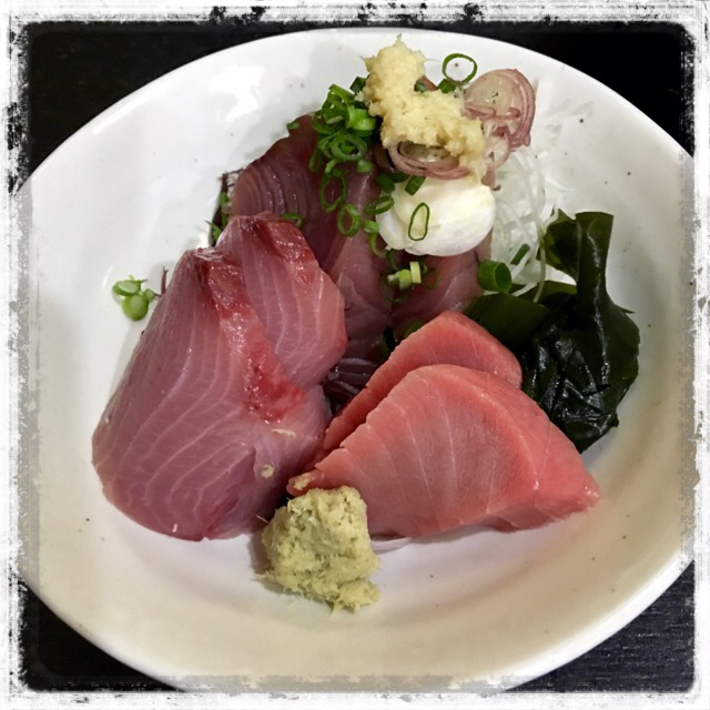 お昼の定食。イナダ刺しとヒレカツ。¥800。