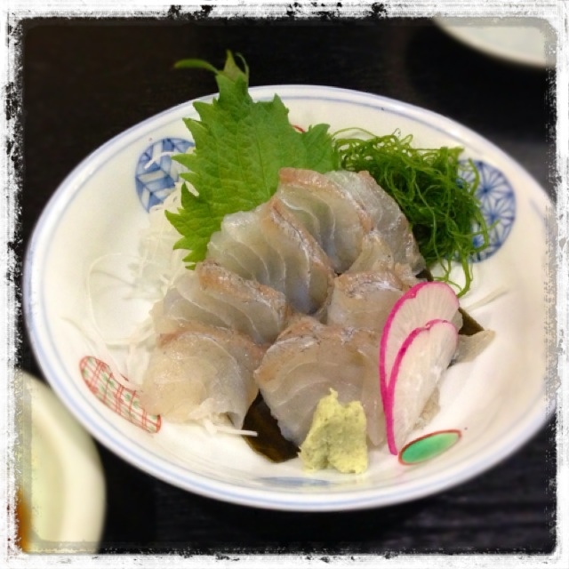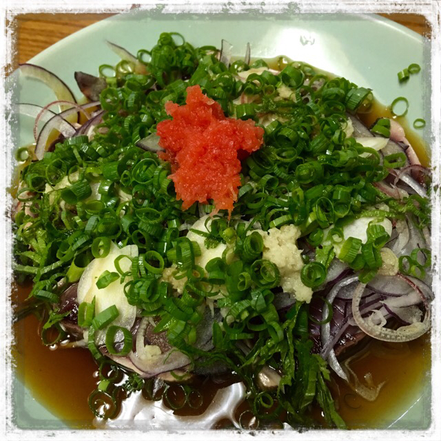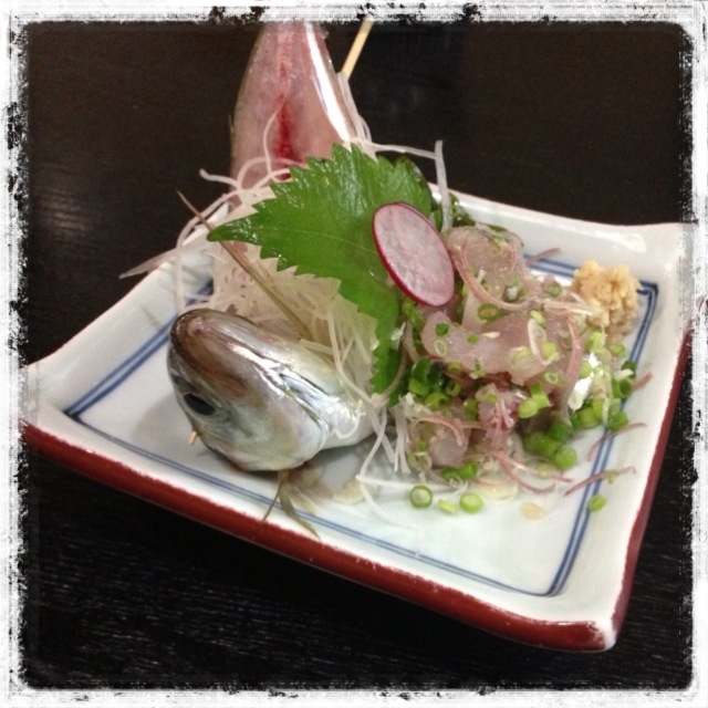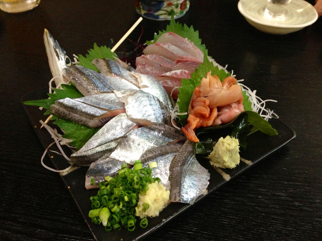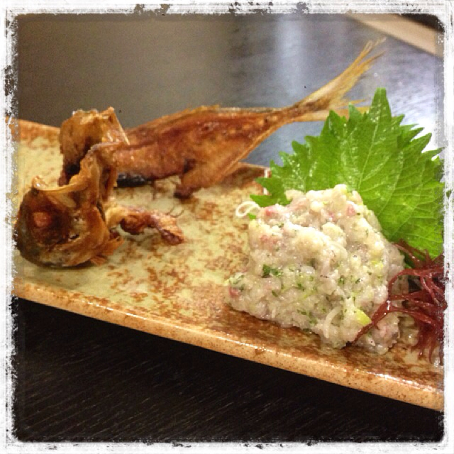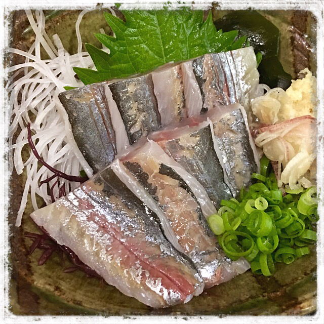 時には店頭の生け簀のお魚をさばいていただく事も。特にアジのお刺身。その後の骨せんべいはおつまみには最高です。