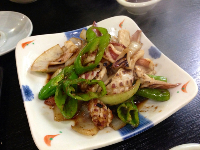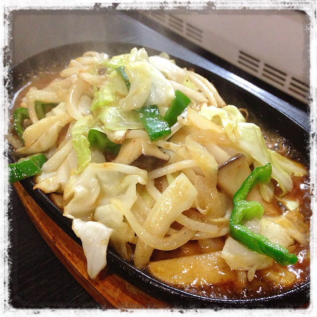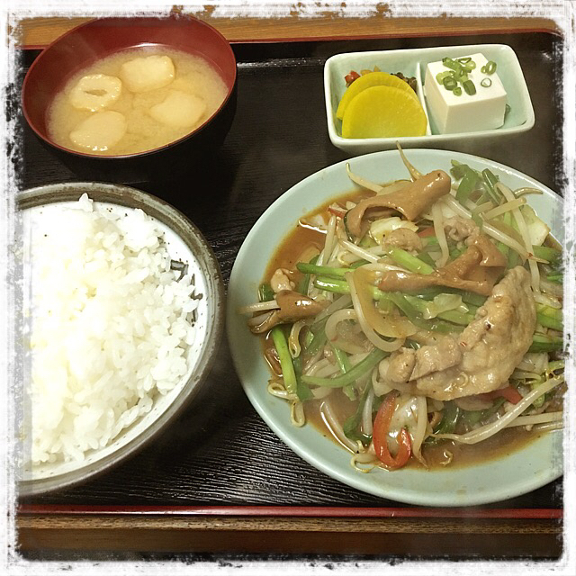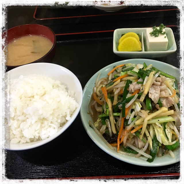 お昼のスタミナ肉ニラ炒め定食。¥800。