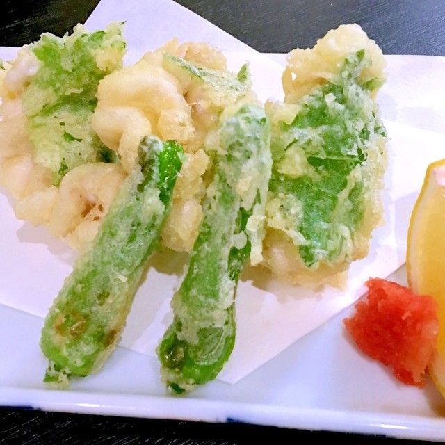 当然、山菜は天ぷら、タケノコと春キャベツもオーダーし、旬の味わいを堪能。