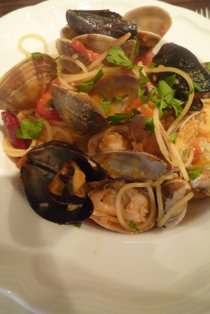 このパスタがね、ちょっと私には辛くって母と途中でピッツア交代