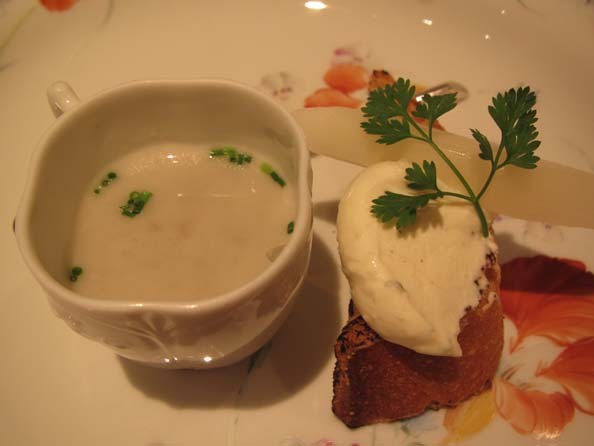 こちらは新牛蒡のスープ ブルサンのブルスケッタ