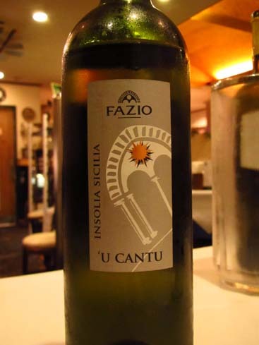 シャルドネとシチリアのブドウ、インソリア?だったかな?を使ったワインで、インソリア100%のワインをこちらのハウスワインの一つにしてるとのことで、少し味見をさせてもらいました。