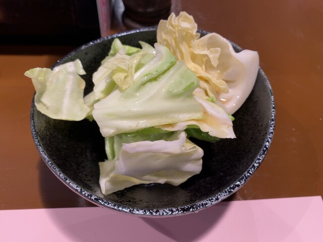 絶妙の塩加減。ドレッシング付きのキャベツも