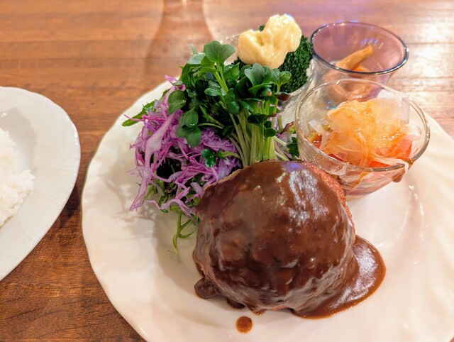 トンカツのことが多いのですが、この日はハンバーグでした。