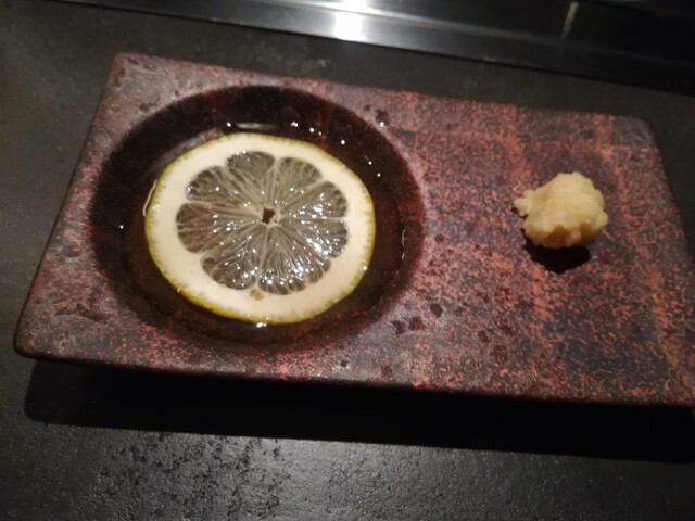 3週間熟成知床和牛タンのタン元の厚切り~レモンと橙を交互に絞って頂きます