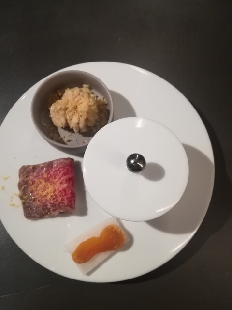 カラスミに和牛肉~手作りカラスミの塩梅とお肉がマッチしている