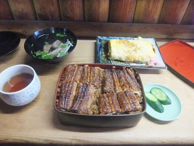 うな重(松)ご飯大盛り、肝焼き