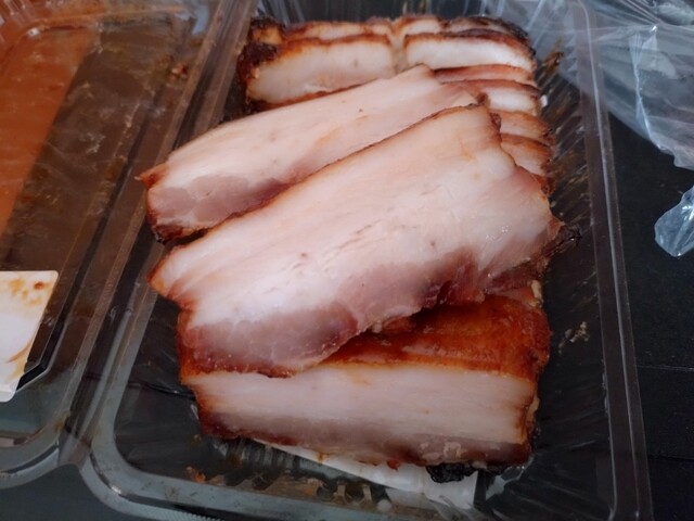 今日買うのも「バラで脂身多め」店員さんに選んでもらって1本買い今回は3210円と一度モモも試したかったのでカットされたブロック1050円を購入合わせて4260円を買って帰った。