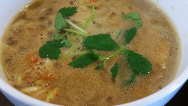 スープは鷹の爪なんかが入っていてピリ辛。