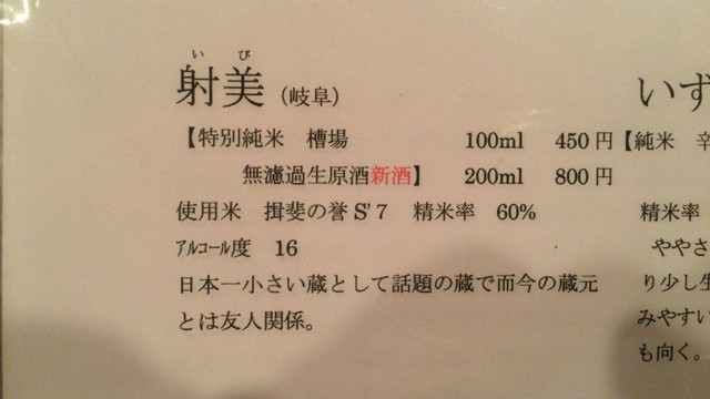 以前から呑みたい呑みたいと思っていた「日本最小の蔵元」が醸造する「射美」