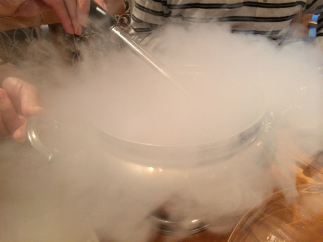 ドライアイスみたいにモクモクと白い煙が出ていて何かマジックでもするみたい、笑