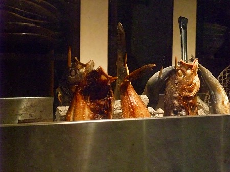 カウンター越しに囲炉裏があり串刺しにされた色んな魚を焼いていました。