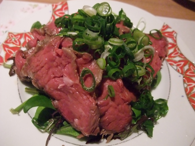 ・メイン・・・牛肉のタタキとその下にはたっぷりのサラダ!