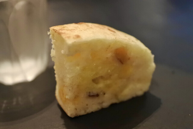 パンはさつまいもの蒸したパン、小麦とチーズのパン、カボチャの熟成パンで1個食べ終わると次のパンを勧めてくれるって感じで次々持ってきてくれます。