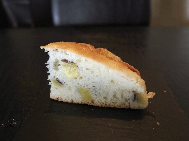 お代わりにいかが?とさつまいもの蒸しパンとカボチャのフォカッチャが出てきた。