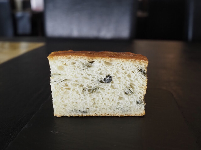 スペイン産ブラックオリーブのパンは香ばしくてオリーブが名脇役だ。