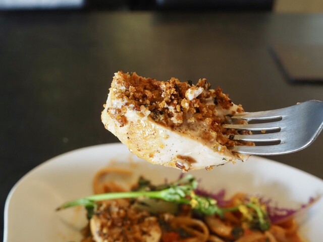 九州産若鶏と森のキノコのその日のパスタ(完熟トマトの味わい)です。