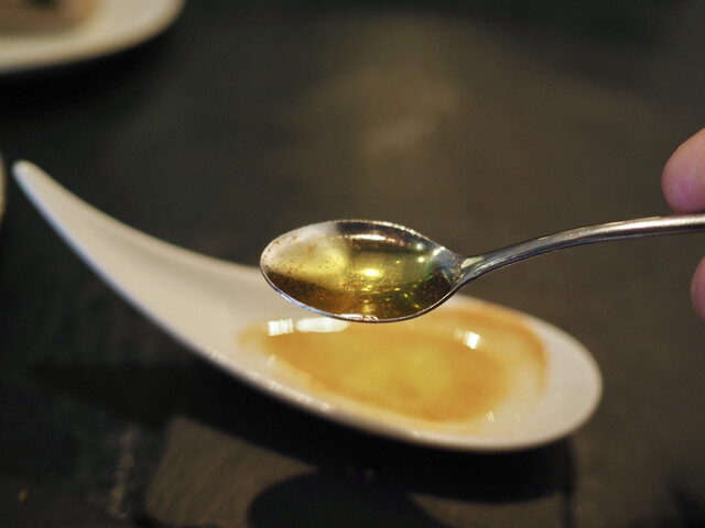 途中でレモンを絞ってサッパリと味変を楽しんで、さらに菜の花のソース、鷹の爪ソースを垂らして