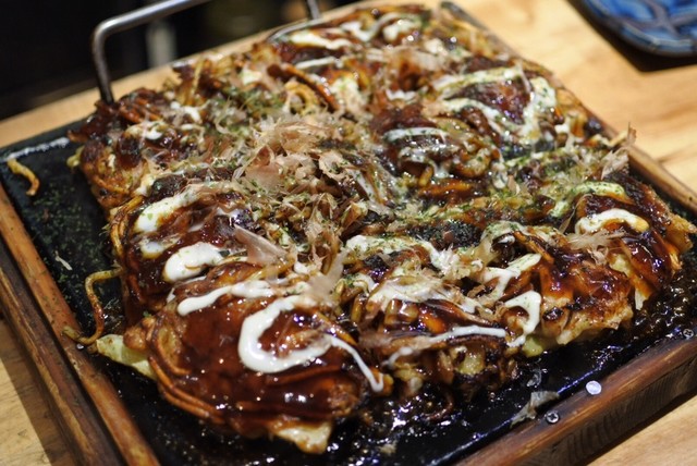 四角い1人用鉄板に乗ってるのは四角いお好み焼き。
