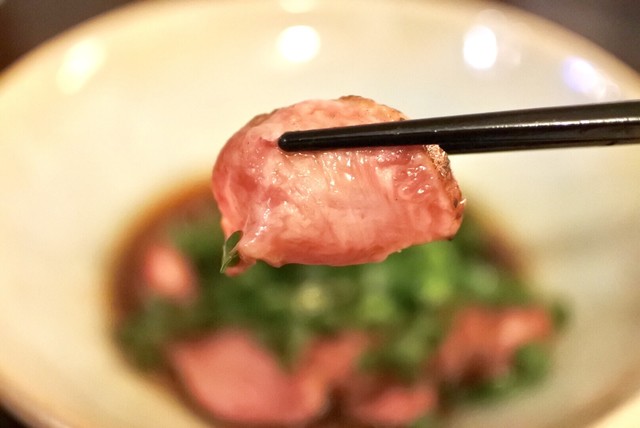 タン元の芯だけを使ったタタキなので、色がピンク色でエロい、笑