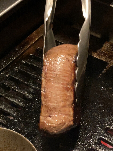 知床和牛厚切りタン、この厚みが最高ね、噛めば噛むほど美味しさが溢れる。