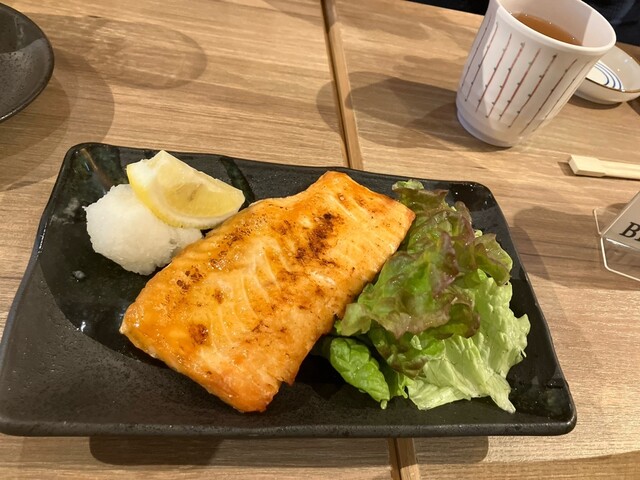 サーモンのハラス、いい焼き加減、白飯が欲しくなるところですが、余しています。