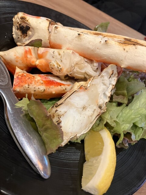 焼きタラバ、これは温かくて絶品、焼いた香ばしさが旨みアップ。