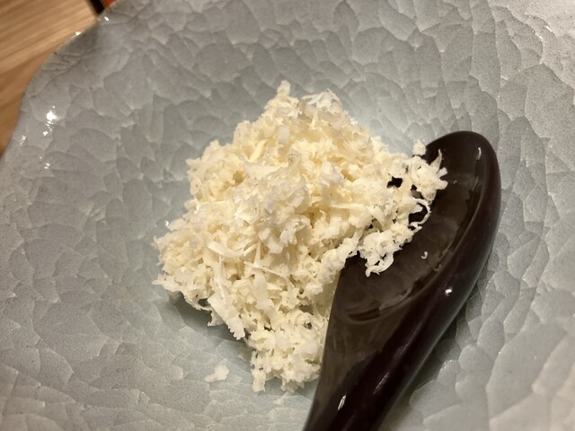 ホタテ入ってる、シャリシャリしているのはマスカットにジュレ。