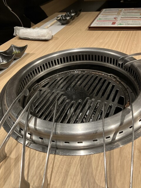 肉2種類と焼き野菜、このタイミングで野菜?最初じゃないんだ。この肉も見た目はいいんだけど、焼くと脂がどこかに行っちゃう感じです。