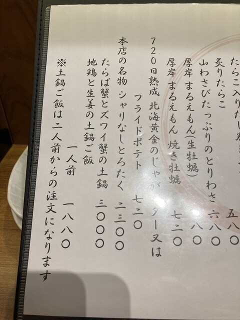お通しは、タラバのむき身、レモン絞った方が好み。
