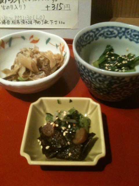 乃木神社での日本酒の会の前に立寄り。この時間でまさかの満席。席を詰めてもらい、入口で待っているときのOKサインの間口さんの上がる右手がいい(笑)。