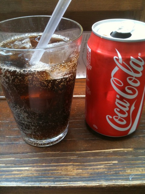 コーラは缶で運ばれてくる潔さ。400円で350ml飲めるのは嬉しい量です。
