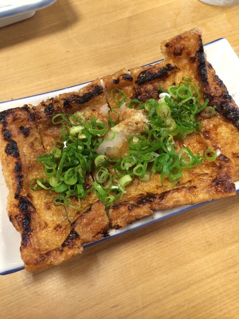 お目当ての湯豆腐は、豆腐一丁を横半分にしており、だし醤油に鰹節とねぎがたっぷり乗ったビジュアルも良く、少し七味を振っていただく味も抜群。その他におすすめの刺身やたき物、焼きあげなど、どれもお酒と合うものばかり。