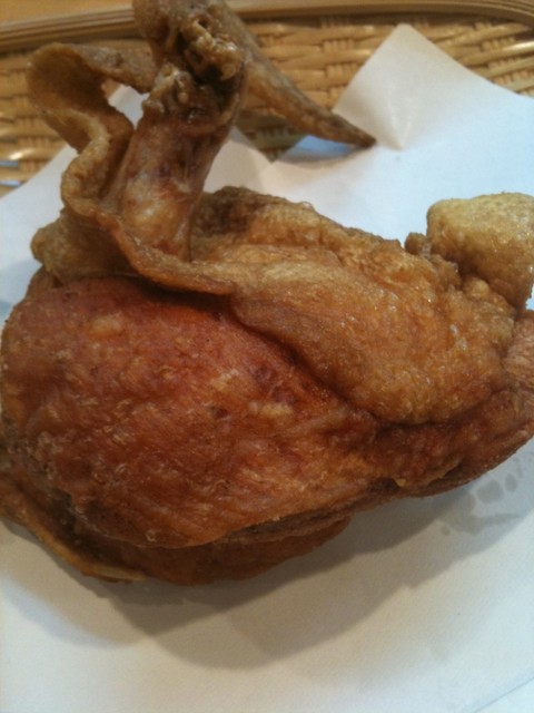そして手羽、ももと続く。ひな鶏なだけあって、身はささみのように結構淡白。このから揚の旨味は皮と骨に近いところの肉にあると思う。ケンタッキーも好きだがあれはスパイスの旨さである事を再認識。