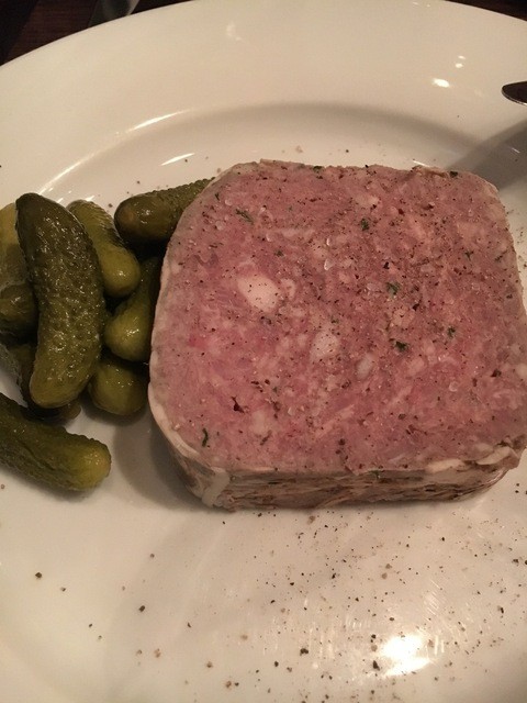 続いてお肉のパテ・・・文句なく美味しい。これぞ家庭料理。塩加減といい、脂身の旨さといい、ほぼパーフェクト。コルニッション(市販の物と思われるが)との相性もいい。