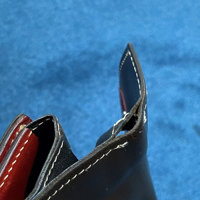 使用してかれこれ10年。2017年にホックが効かなくなりメーカーに送って修理をして使い続けていましたがついに縫い糸がスレてコインケースのサイド部がほつれてきました。クアトロガッツのページを見に行くとこのポキートは小さすぎて人気がないのか、今ではカラバリは4種類しかありません。早晩廃番になってしまうかもしれないと思い、あるうちに買っておこうと今と同じ色を発注しました。
