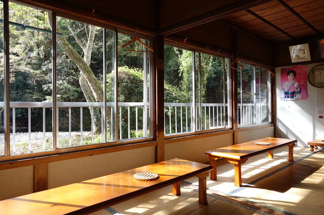 休憩広間は沢の音が聞こえる