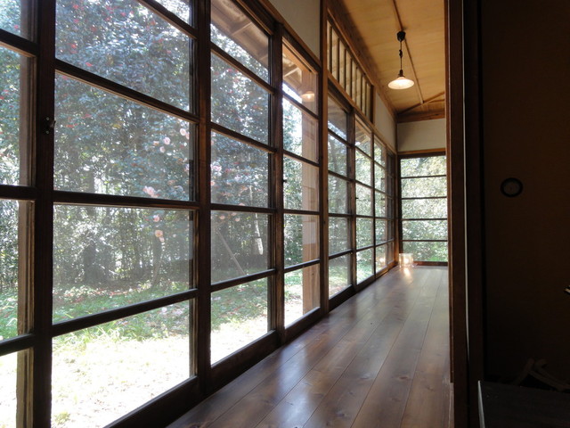 店内も民家様の造りで靴を脱いで上がります。左手が大きめの座敷で計6卓、右手には掘りごたつの個室座敷。広縁に板ガラスの引き戸、障子、裸電球。窓の外には緑が見えます。大変粋な造作で気遣いが感じられ私のとても好きな雰囲気です。キャパは小さいので開店前に待っても一巡目に入れない可能性もあります。