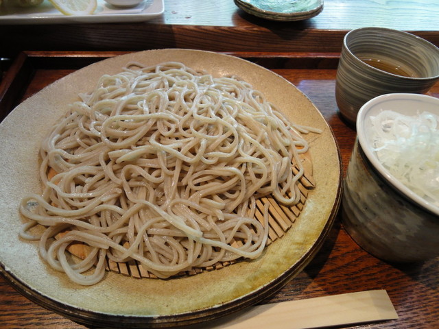 つけ汁はこの地域では中々お目にかかれないちゃんとした濃い目の辛汁。返しはまろやかであとを引くような旨みにあふれ、甘みに逃げずきっちりと勝負しています。ダシも吟味されていて芳醇な香りが鼻腔をくすぐります。かなりキャラの濃いつけ汁ではありますが蕎麦の風味がすばらしいのでこれでちょうどいい組み合わせとなります。