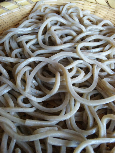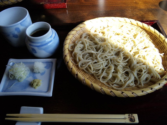つけ汁はこの地域では中々お目にかかれないちゃんとした濃い目の辛汁。返しはまろやかであとを引くような旨みにあふれ、甘みに逃げずきっちりと勝負しています。ダシも吟味されていて芳醇な香りが鼻腔をくすぐります。かなりキャラの濃いつけ汁ではありますが蕎麦の風味がすばらしいのでこれでちょうどいい組み合わせとなります。