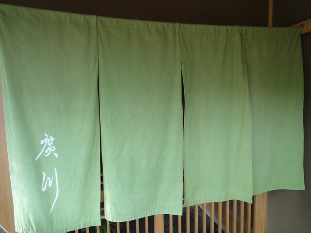 家族旅行で京都へ出かけるにあたり、前回訪問時の好印象が忘れられず、夕食に廣川さんへ伺うことにしました。ゴールデンウィークの中日、しかも家族5人となれば飛込みではありつけない可能性もあると思い、あらかじめ電話で予約を入れました。予約の電話では日にち、時間と人数を申し述べ注文は当日その場ですることになります。また予約の場合は2階席となり席料がかかるということで、恐る恐るお幾らですかと訪ねると1組1000円とのこと。これで席が確実に確保されるならOKですね。