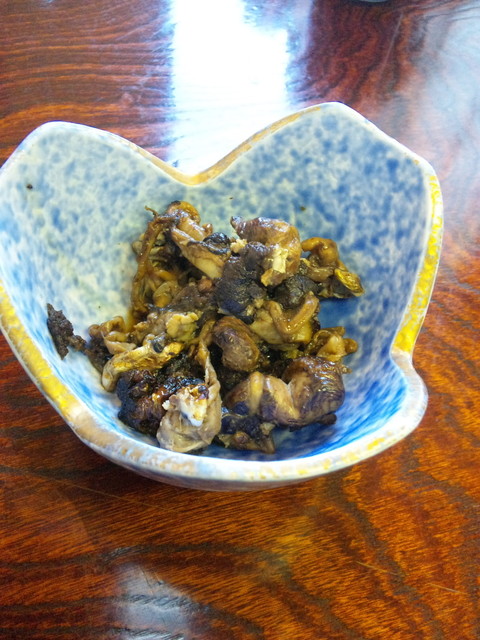 肝焼きは小鉢に盛られて出てきます。どちらかと言うと肝煮に近い食感と味でした。肝は苦味が残してあるタイプ。適度な歯ごたえがあります。あまりタレを絡めない調理で味付けは薄めですね。これはこれでおいしかった。
