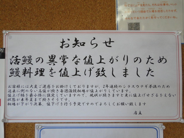こちら、2年前はうな重並が2000円でしたので13%の値上げです。