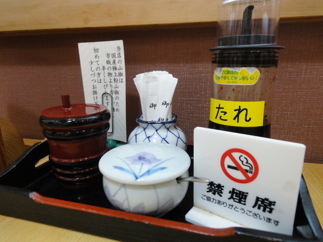 玄関付近は入母屋の屋根の和風の造作になっていますが建物自体は色気のない4階建てのビルです。店内は広大で、テーブル、座敷、小上がりの各種を取り揃えています。二階には有料の個室もあり、お店全体では100人近く収容できるのではないでしょうか。この規模になるとうなぎ屋さんの風情は望むべくもなく、雰囲気としては、大きな温泉旅館の食事フロア・・・といえばイメージが近いと思います。