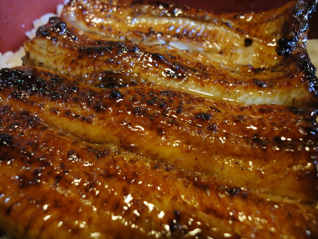 まず、生ビールの突き出しが良かった。地元で獲れる「ダルマイカ」を茹でたもので、塩まぶしになっています。とても柔らかく、ソフトないかの風味と塩味がバッチリ合っていました。続いて肝焼き(一本360円)。こちらは見た目はかなり焼きが入っていて、焦げ目が付くほど。表面のパリッとした歯ごたえに対して中は非常にジューシーで適度な苦味と甘めのタレが絡み最高です。白焼きは余計な味がしない、素材の旨みを味わわせるタイプで、これも美味しくて箸が進みました。蒲焼が供されたのは注文してから30分ちょっとしてから。一番ベーシックな花を頼んだのにも関わらず、十分以上の大きさと厚みです。中蒸しの適度な柔らかさで脂もしっかり乗っています。タレは甘みが強めですが、サラリとした甘みなのでまったく気になりません。そして、ゴハン。こちらのゴハンは蒸し竈なる器具で炊いているそうです。このゴハンが猛烈にウマイ。粒が立っていて適度な硬さでべたつかない。白米の香りも素晴らしい。ごはんへのタレのかかり方は控え目で、これはゴハンを引き立たせるのと、甘めのタレとのバランスを考えた狙いだと思います。すっかりやられてしまいました!自家製の漬け物も浅めでとても好みに合いました。