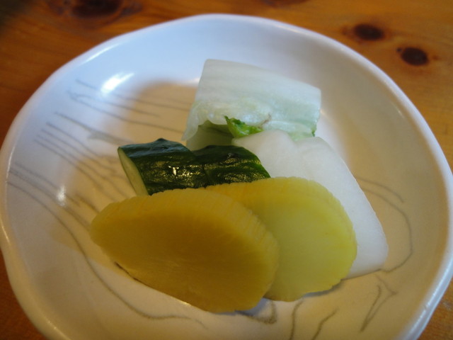 外観は一戸建ての一見、民家風の佇まいです。入り口が正面と左側と2箇所あり、正面の入り口は座敷に近く、左側の入り口はカウンターとテーブル席のある部屋に通じています。席はカウンターに5-6席、半個室ふうの4人用テーブル席が2卓。それと座敷になります。飾り気はありませんがその分落ちついた食事ができます。