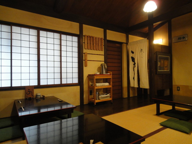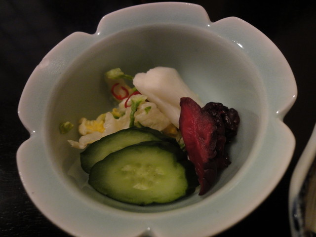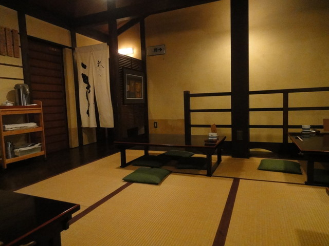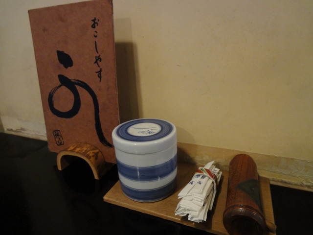 花見小路の一本西側の風情のある通りにあります。町屋風の建物で桶の描かれた暖簾と「う」の字の行灯がとても洒落ています。家族での訪問なので席の予約をしておきました。暖簾をくぐるとすぐ左手がオープンな調理場。左側の急な階段を上った2階の座敷に案内されます。4人用の座卓が6卓ほどの小ぢんまりとしたやや明かりを落としたシックでシンプルな塗り壁の部屋です。